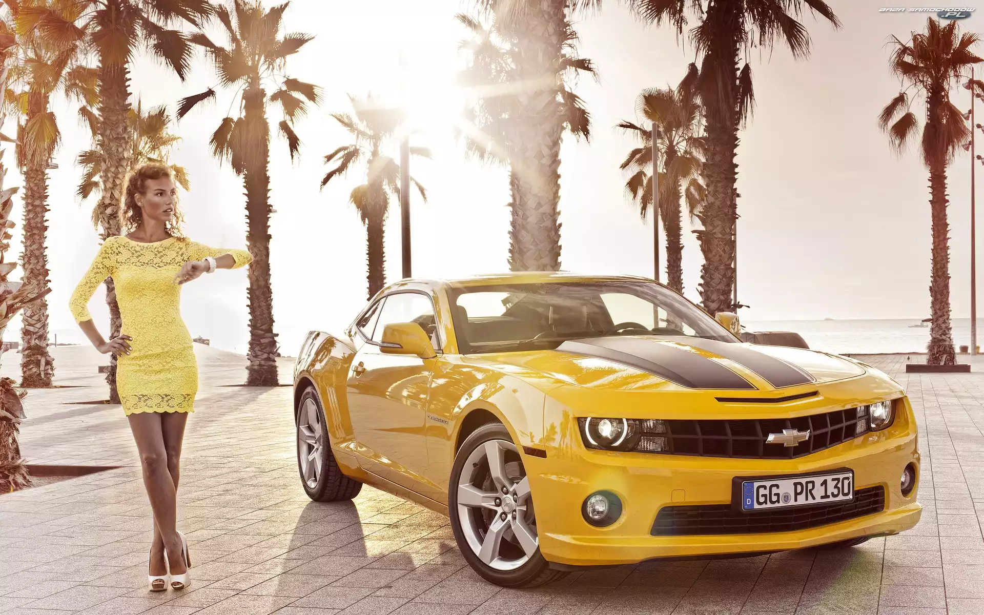 Samochód: Chevrolet Camaro, Palmy, Żółty, Kobieta