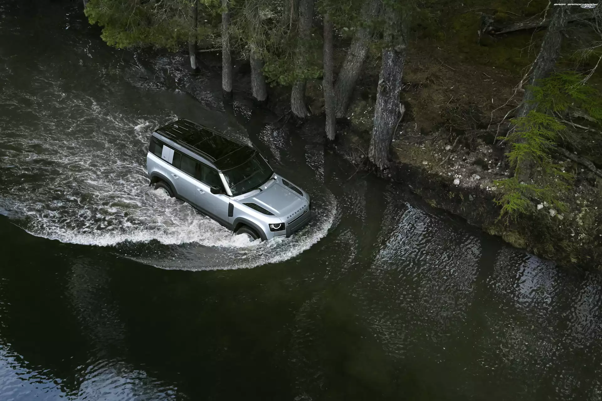 Samochód: Rzeka, Land Rover Defender, 2020