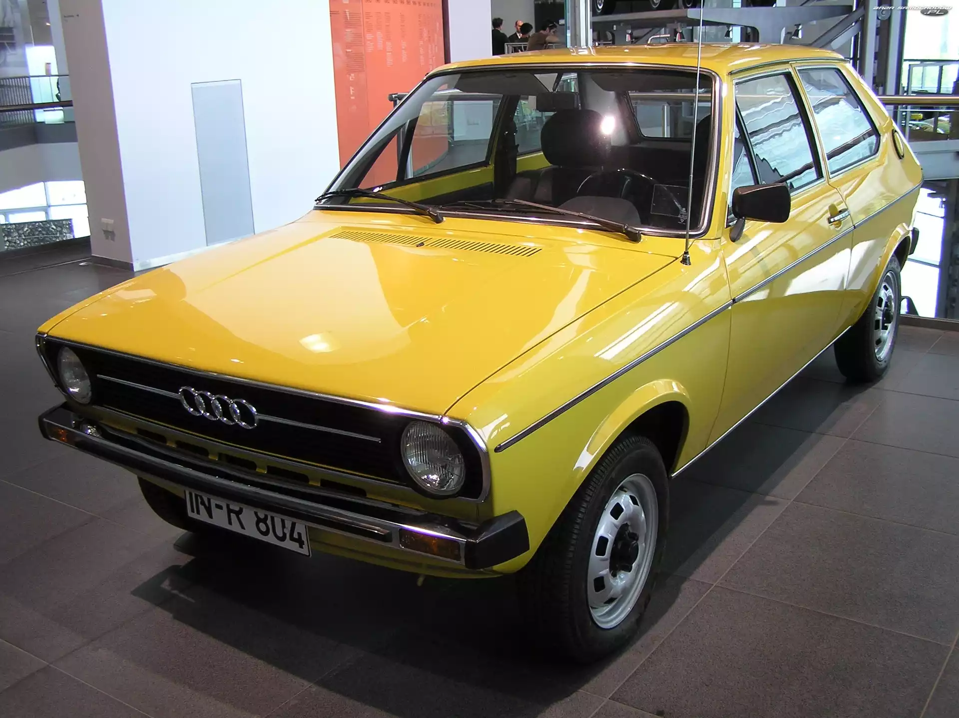 Wystawa, Audi 50, Salon Audi 50, Chrom, Przód, Zderzak Audi 50 Prezentacja, Audi 50, Wystawa Reklama, Pomarańczowe, Audi 50 Hatchback, Audi 50 Drzwi, Audi 50